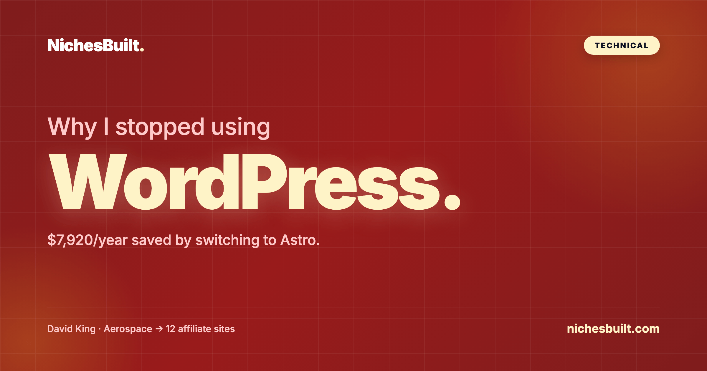 WordPress runs 43% of the web. I used it for years. Then I switched all 12 of my affiliate sites to Astro and the results convinced me there's no going back.